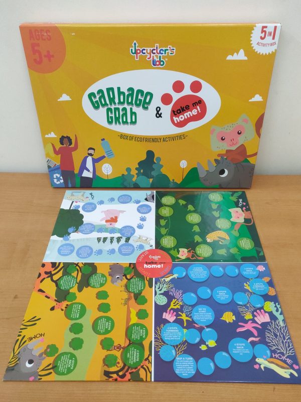 1) Take Me Home Board Game on animal conservation 2) Garbage Grab Board Game for Waste Segregation 3) Sticker activity 4) Endangered animal Flashcards 5) DIY game pegs Bonus: 6) 15 activity sheet for home 7) Certificate.