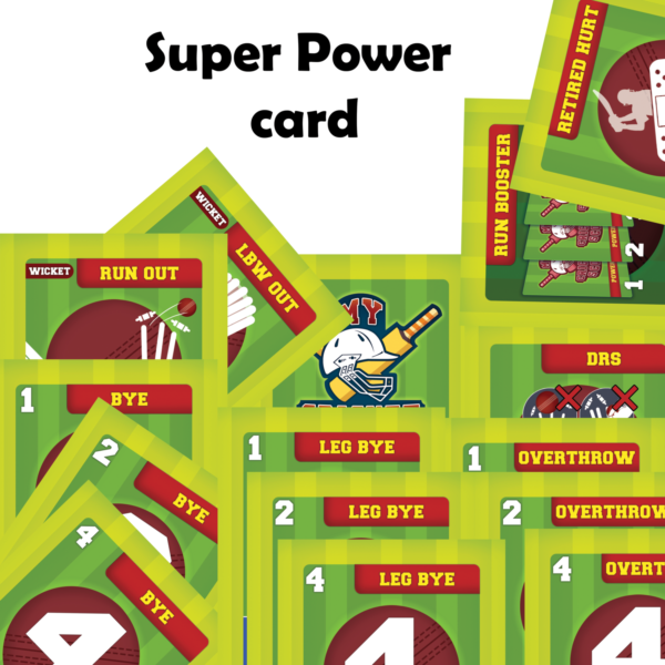 The game is a 2-4 player cricket game for Age 8+. Game contains 170 cards of Power Play, Non-Power Play & Super Powers.