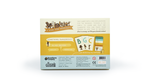 Trophies is the first in the “Games for Thursdays” line of party games by Facade Games.
